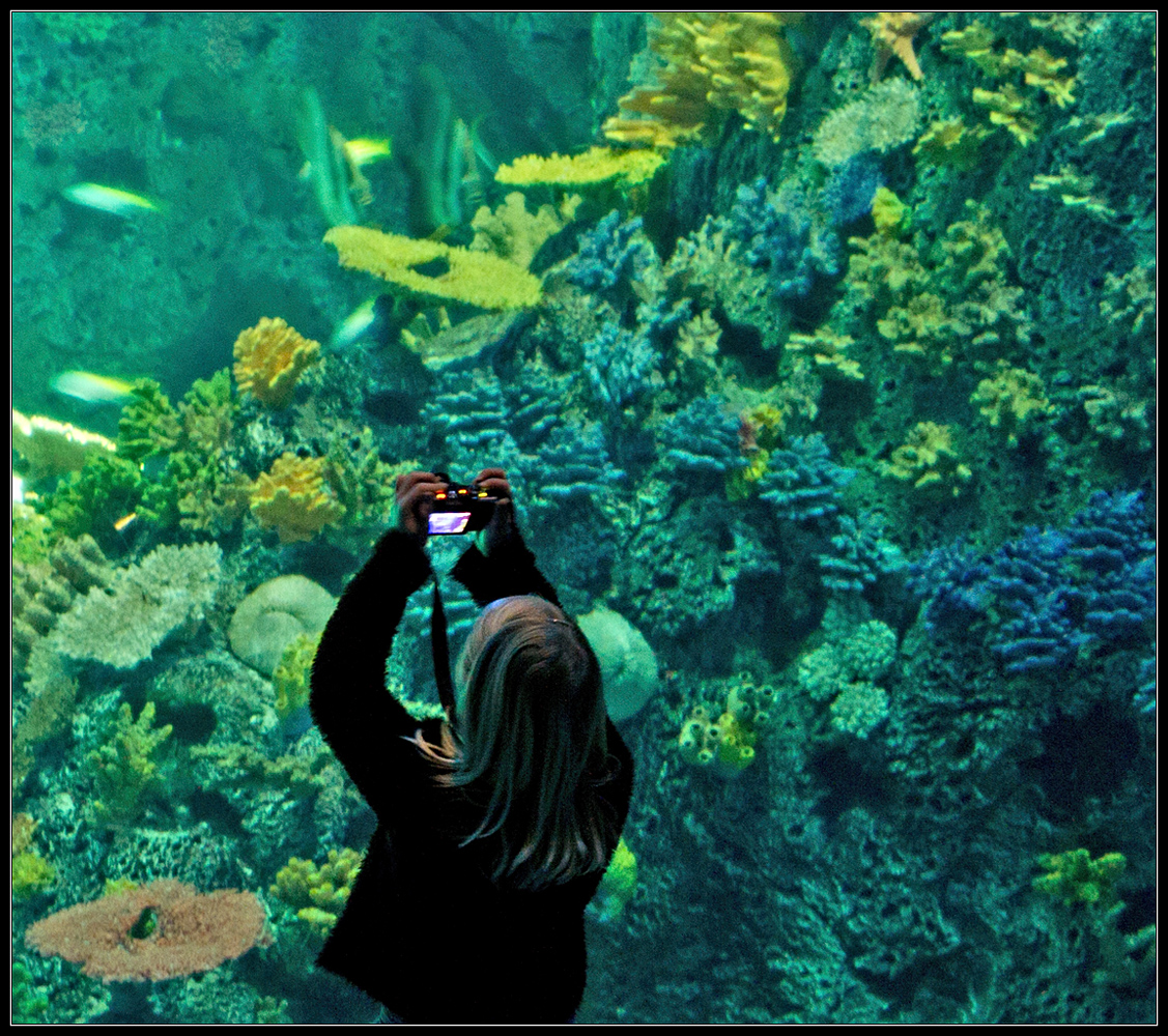 Stedet er absolut en tur værd. Oceanet er et kæmpe stort akvarium, som er 21 meter i dybden. Det indeholder 4 millioner liter havvand og huser bl.a. hajer og stimer af guldmakrel.